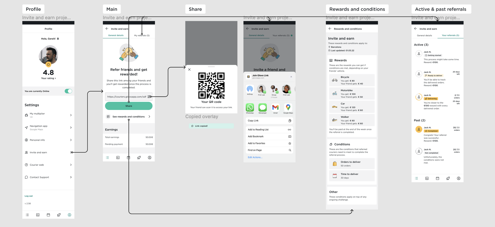 Glovo faced a fleet shortage in several markets, creating a big negative impact on the business. A key strategy for boosting courier numbers is through referral program. Yet, the existing referral system, operated via email outside the Glovo app, had numerous friction points and overall didn’t offer an optimal experience for couriers.