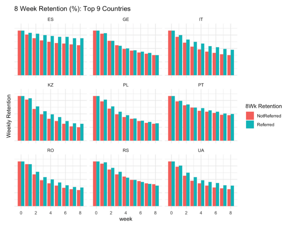 8 week retention rate of referred vs non-referred couriers